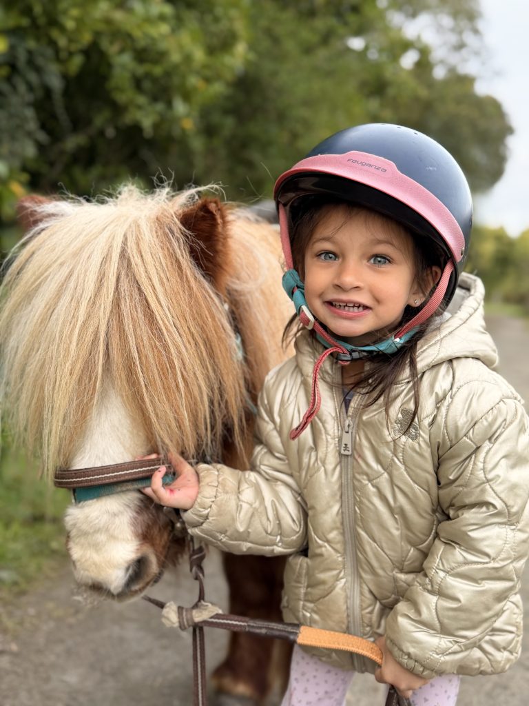 Initiation jusqu’à 9 ans ( balade autonome, confiage d’un poney shetland sur un circuit balisé)=> 25€ pour 1H (environ)